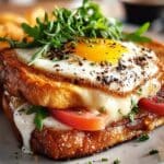 Keywords: croque madame, french sandwich, grilled cheese, fried egg, béchamel, brunch, easy recipe, quick meal