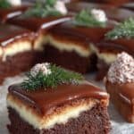 - Lagerung: Bewahre den fertigen Kuchen im Kühlschrank auf, da er eine gekühlte Schicht enthält. So bleibt er frisch und behält seine Form, besonders die Schokoladenglasur.