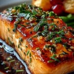 Sobald der Lachs die perfekte Garstufe erreicht hat, nehmen wir die Auflaufform vorsichtig aus dem Ofen. Jetzt ist eine kurze Ruhezeit von etwa 5 Minuten wichtig. Diese Phase erlaubt es den Säften im Fisch, sich zu verteilen und die Textur zu verfeinern. Nach der kurzen Ruhezeit ist der Honig-Lachs aus dem Ofen bereit zum Servieren. Kurz vor dem Anrichten bestreuen wir den Lachs großzügig mit frisch gehackter Petersilie. Die grüne Petersilie bringt nicht nur Farbe auf den Teller, sondern auch eine frische, leicht pfeffrige Note, die wunderbar mit der süßlichen Marinade harmoniert. Dieses Gericht ist ein wahres Fest für die Sinne und eine tolle Option für einen Besuch auf Pinterest für weitere Inspirationen.