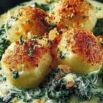 Kartoffelknödel mit cremiger Spinat-Käse-Soße: Einfach & köstlich