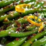 Zitroniger Twist mit Parmesan: Nach dem Backen können die Bohnen noch mit frisch geriebenem Parmesan bestreut werden. Die Kombination aus Zitrone, Knoblauch und dem würzigen Parmesan ist ein Klassiker, der immer gut ankommt. Dieser Schritt verleiht dem Gericht eine zusätzliche würzige und leicht salzige Note, die hervorragend mit der Frische der Zitrone harmoniert.