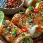 Servieren Sie die Frühlingsrollen sofort, solange sie noch warm und die Hülle schön knusprig ist. Dieses Gericht ist ein Genuss für alle Sinne und eignet sich perfekt als leichte Mahlzeit, Vorspeise oder als Teil eines größeren asiatischen Menüs. Genießen Sie die Kombination aus frischem Gemüse, zartem Hühnchen und der unwiderstehlichen Knusprigkeit.