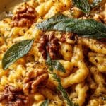 Herzhafte Kürbis-Spätzle, verfeinert mit knusprigen Walnüssen und aromatischem Salbei. Ein schnelles und geschmackvolles Gericht, das perfekt für die kältere Jahreszeit ist.