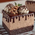 Diese Nuss-Nougat-Torte bietet einen reichhaltigen Schokoladenboden, verfeinert mit den köstlichen Aromen von Nougat und Haselnüssen. Sie ist ein dekadenter Nachtisch, perfekt für besondere Anlässe, der eine schöne Balance zwischen schokoladiger Fülle und nussiger Süße bietet.