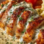 Indulge in a rich and creamy chicken dish featuring tender fillets bathed in a luscious cream cheese and Parmesan sauce. This easy-to-make recipe promises a satisfying meal perfect for any weeknight dinner.