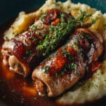 Für ein besonderes Abendessen kannst du die Rouladen auch in Scheiben schneiden und auf einem Bett aus cremigen Nudeln mit einer herzhaften Soße servieren. Eine weitere Idee ist, sie als Füllung für Wraps oder Fladenbrote zu verwenden, was sie zu einem tollen Gericht für unterwegs oder ein ungezwungenes Abendessen macht.
