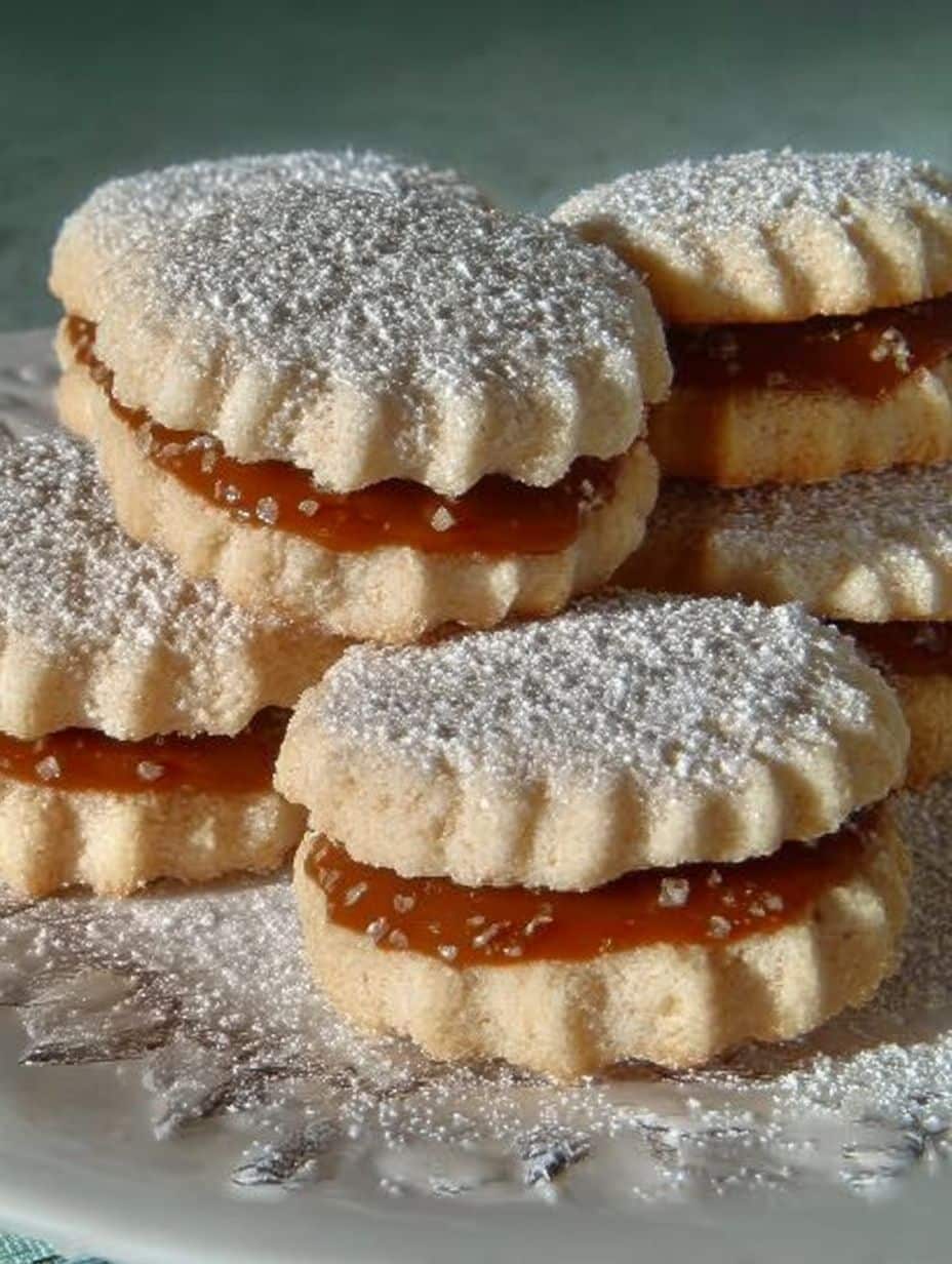 Genießen Sie diese zarten Kekse, gefüllt mit süßer Karamell-Kondensmilch und optional Nüssen oder Schokoladenstückchen. Ein einfacher Genuss für jede Gelegenheit.